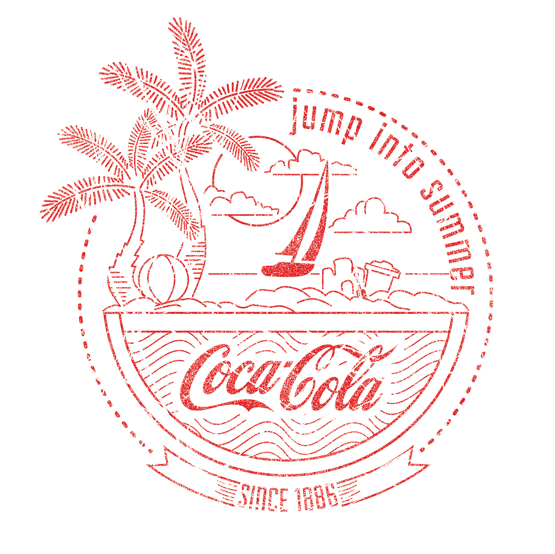 This design was done for the Coke catalog, intended for print on T-Shirts. It is a cost effective one color design that retains the Coke centered branding message, with clean lines and a 'fun' look.