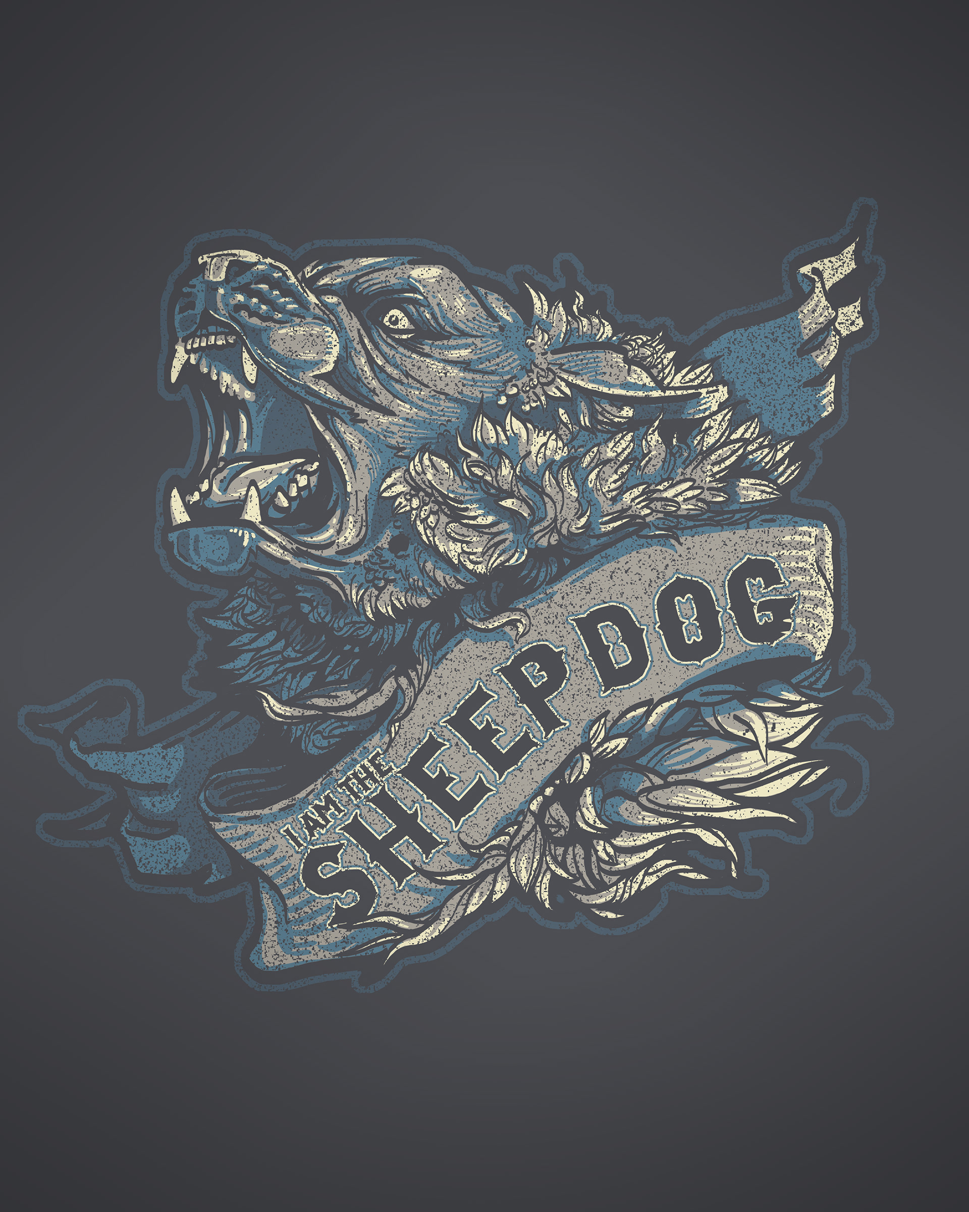 This illustration was created for a gun range who requested designs for screenprint on T-Shirts. The analogy of the sheepdog is something that gun culture enthusiasts would be familiar with, and the retail look would appeal to that demographic.