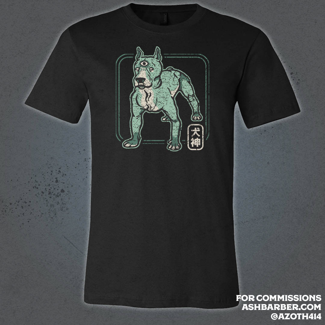 Inugami, or Dog God. I got the idea randomly and thought it'd be cool to do a modern interpretation on a Japanese mythological creature. This was designed to be screen printed with 3 inks, and distressed for a vintage look.