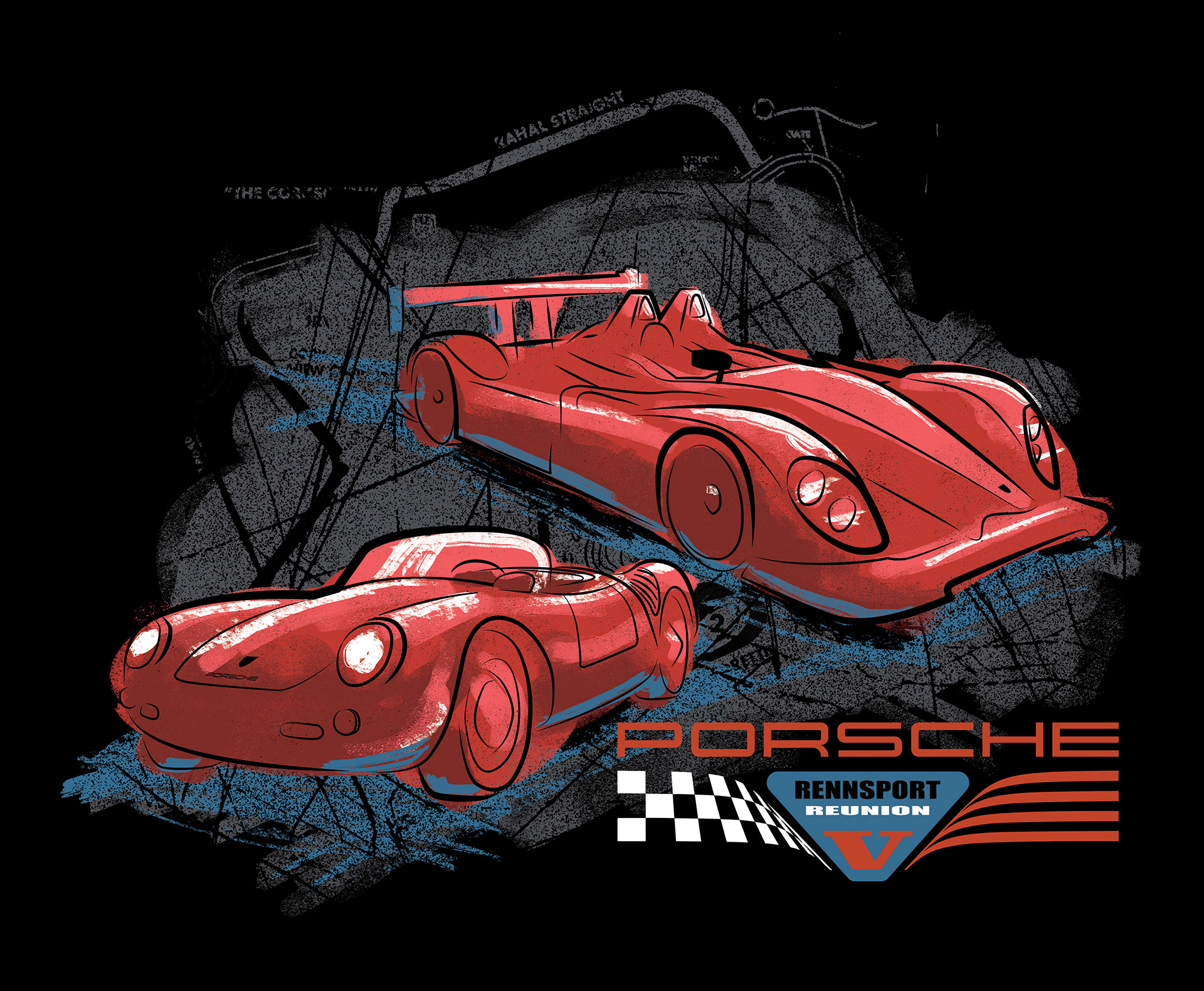 Porsche Rennsport t-shirt design celebrating the 5th anniversary of this event at Laguna Seca.
