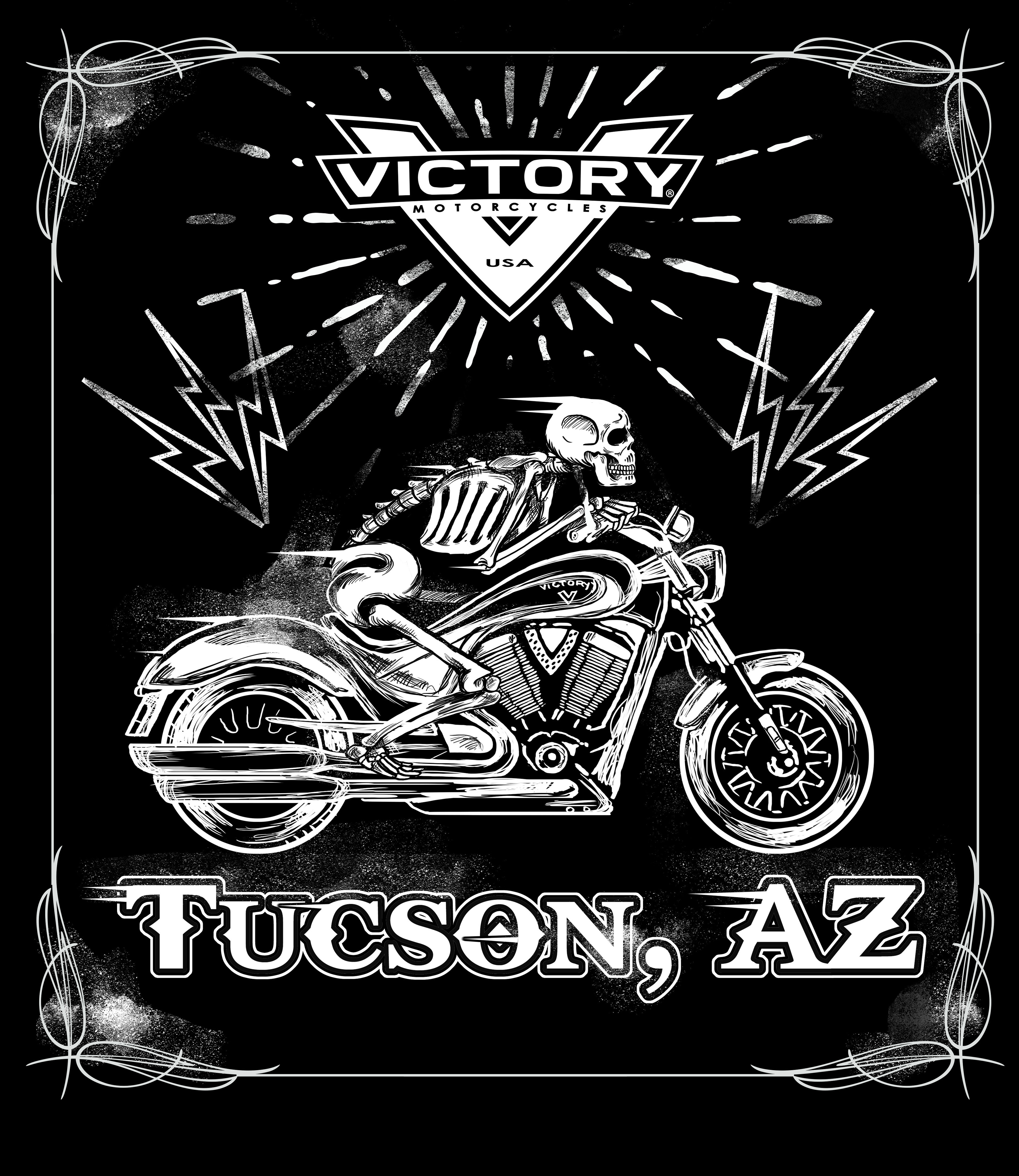 This is a design for a Tucson Victory Motorcycle dealership. Final image to be screen printed onto various color shirts.