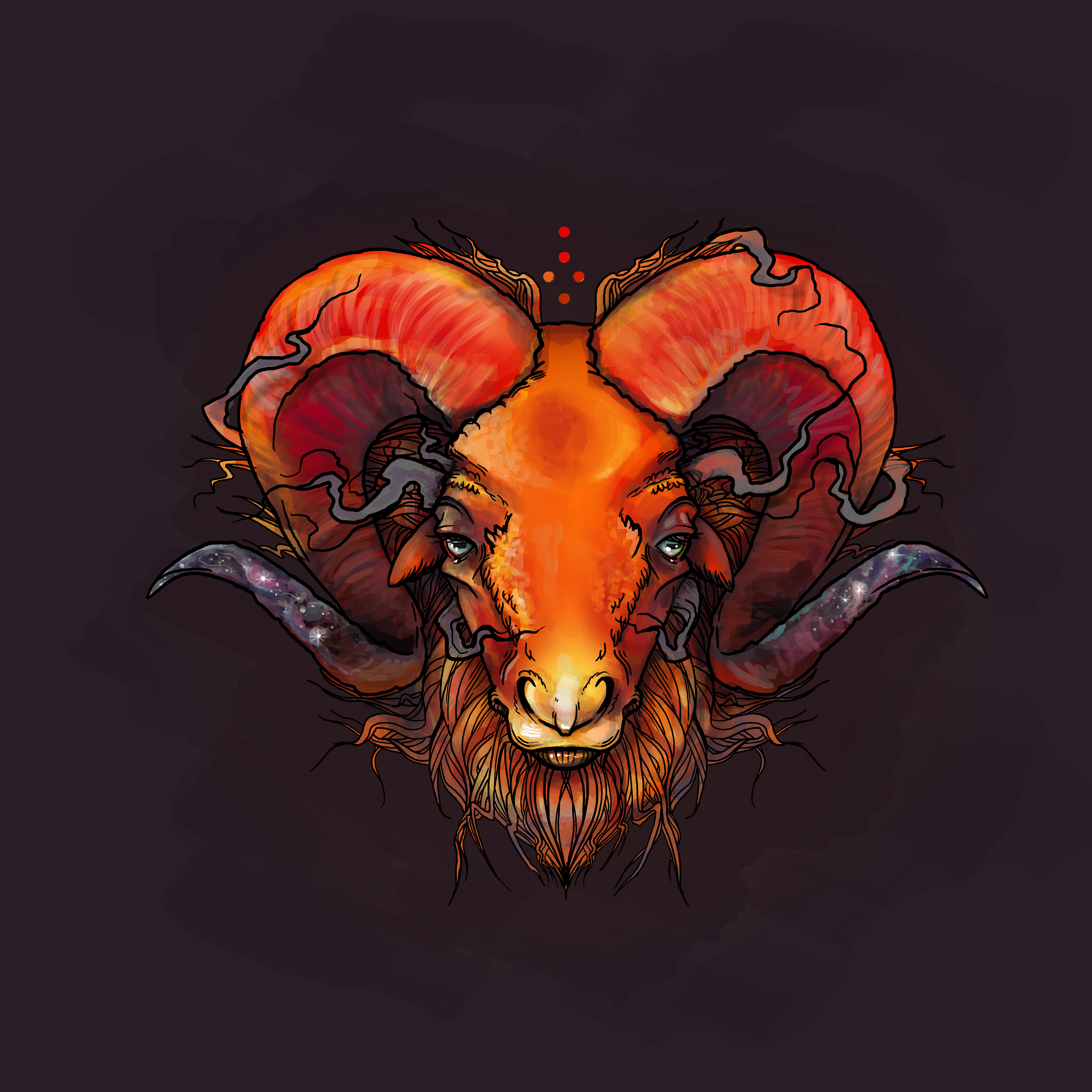 Feeling inspired by the new year, I decided to undertake a series of illustrations based on the Zodiac. This is the first one: Aries the Ram. Aries is the first sign starting off the Zodiacal new year in March. Aries represents the element of Fire, and is ruled by Mars. The Ram is symbolic of the first fresh energy of life bursting forth in spring.